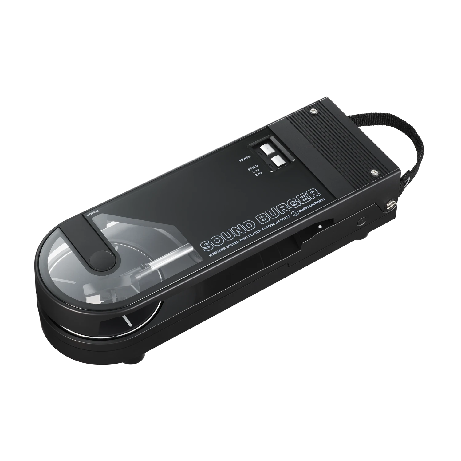The Sound Burger offers high-quality sound reproduction with a belt-drive system that plays 33-1/3 and 45 RPM records. To achieve both portability and stability, the tonearm employs a dynamic balance system in which stylus pressure is applied via a spring. In addition, a high-precision DC motor maintains stable rotation. This unique turntable features a die-cast aluminum alloy platter with damping design and a replaceable ATN3600L stylus (sold separately). The Sound Burger also comes with an audio cable for those who prefer an analog, wired listening experience.