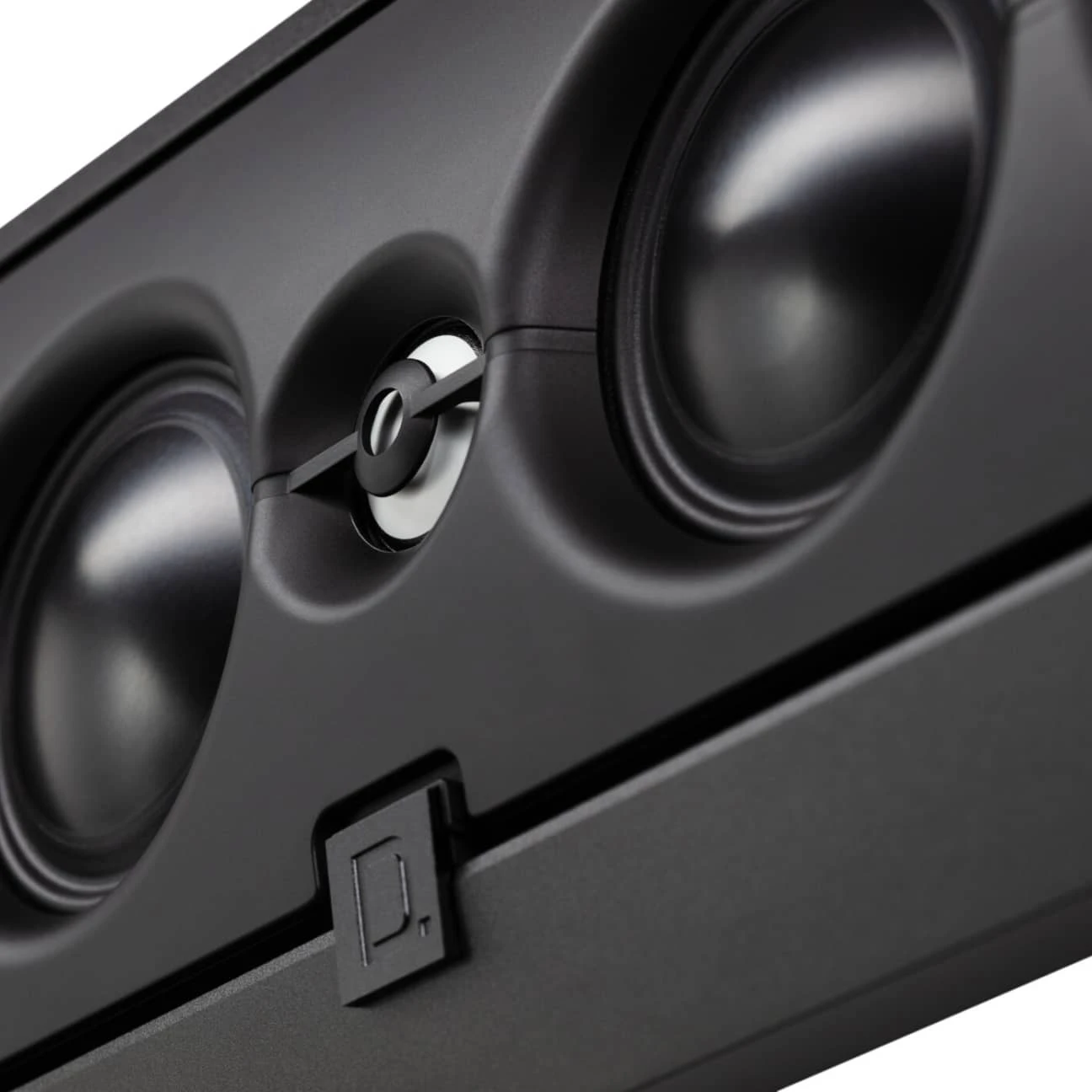 The Mythos 3C-65 three-channel passive sound bar elevates home theater experiences indoors and in covered outdoor areas. Combining the three front channels of a home theater system in a single cabinet, this ultra-slim, on-wall, two-way speaker blends high-performance sound and designer aesthetics in a weather-protected, adjustable-width rigid aluminum enclosure.