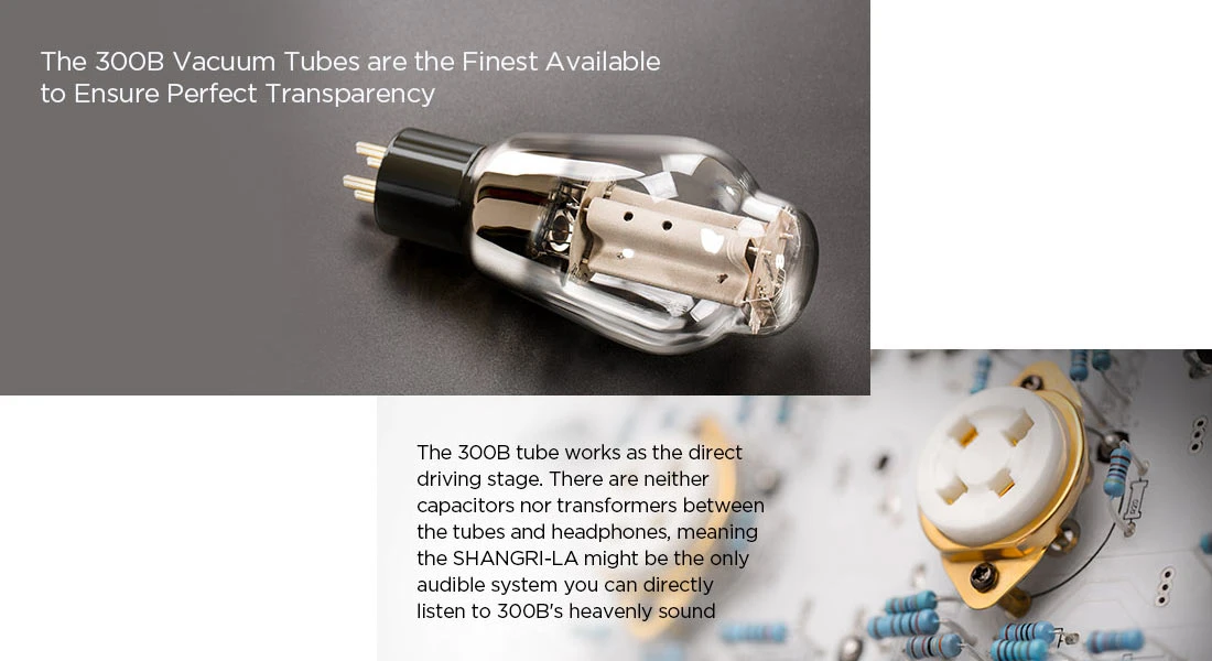 Featuring four of HiFiMan’s custom designed, custom made, 300B Tubes as the warm beating heart which pumps the audio lifeblood of the Shangri-La.