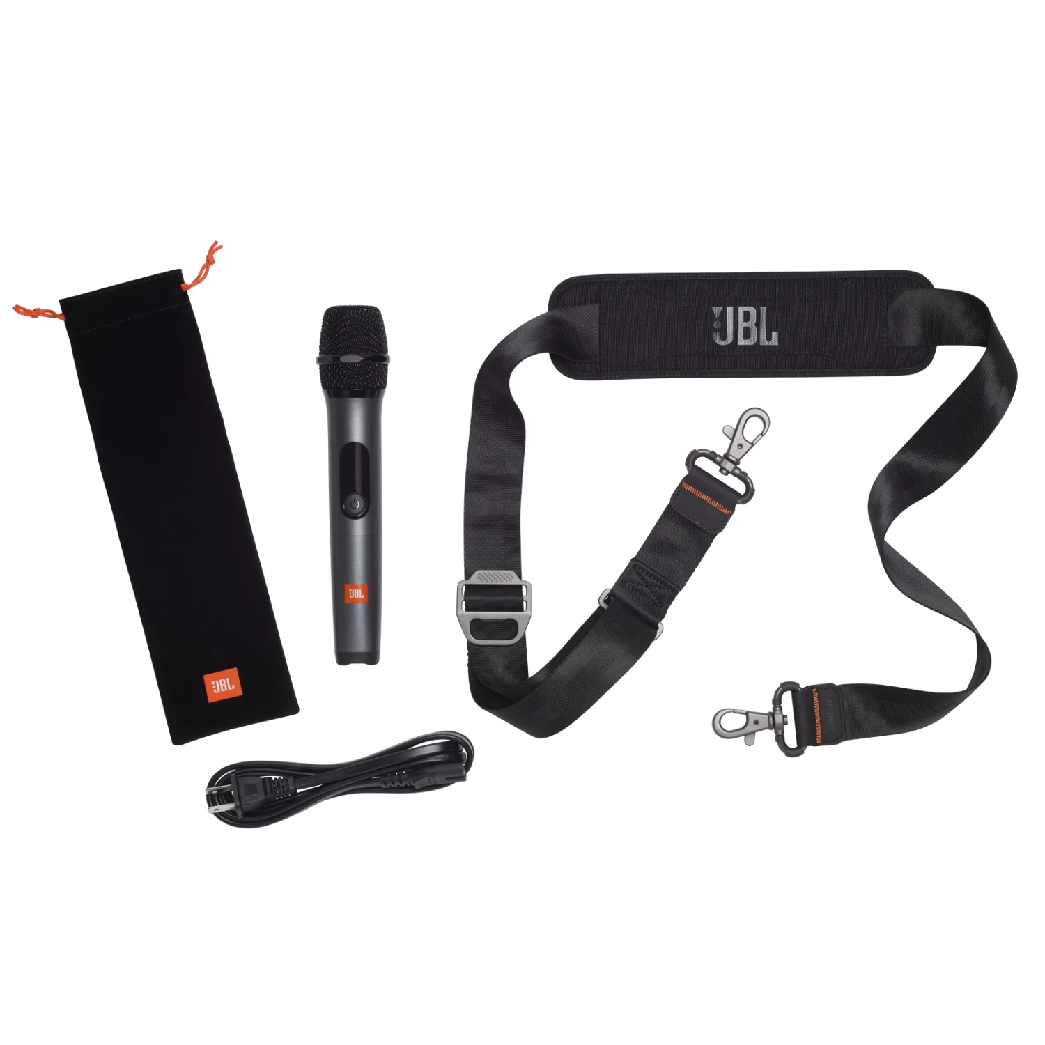 - JBL wireless microphone included – Sing without limits or wires. The JBL PartyBox On-The-Go comes with a JBL wireless microphone with a range of up to 10 meters.