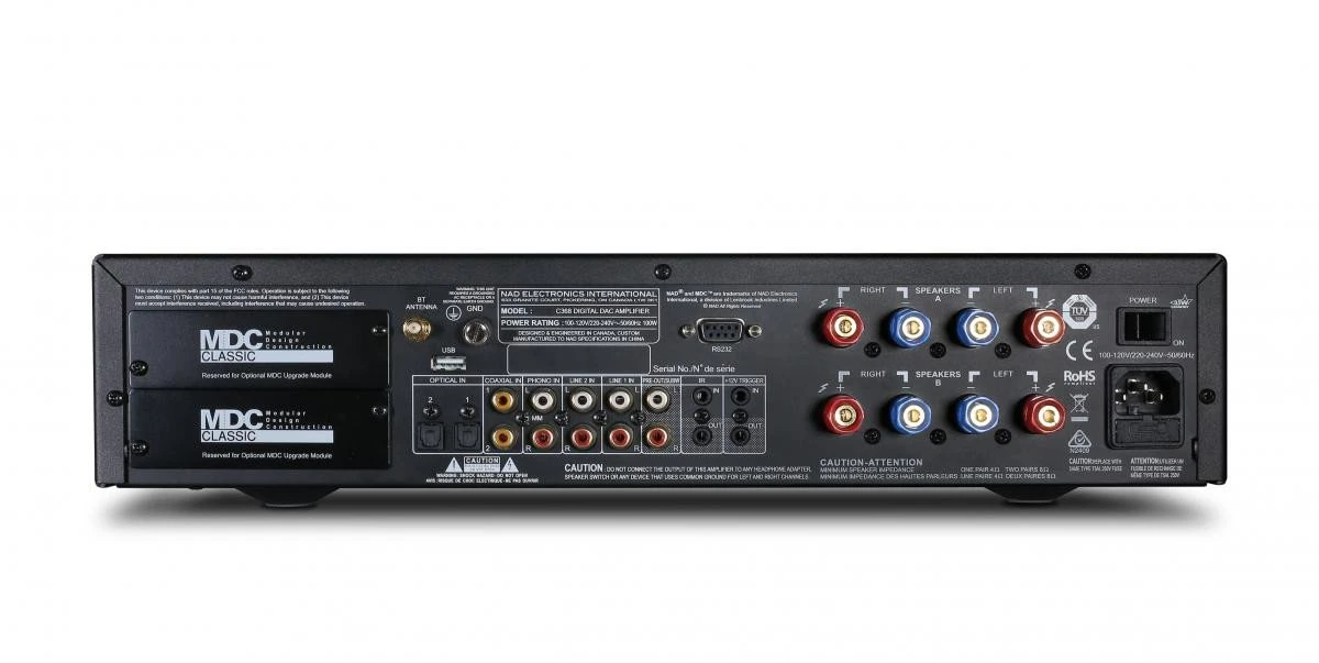 Modular Design Construction (MDC), an exclusive feature of NAD products, allows you to customize your NAD amplifier with additional capabilities and features, now or in the future. The two available MDC slots can accommodate a variety of upgrade modules including 4K video capable HDMI switching, additional digital inputs, additional analog and phono Inputs, and one of the most advanced hi-res audio multi-room wireless systems available, the BluOS music management system developed by Bluesound. BluOS connects to your network and is controlled via smartphone, tablet, or desktop to manage your music collection and connect you to a growing list of high-quality streaming music services.