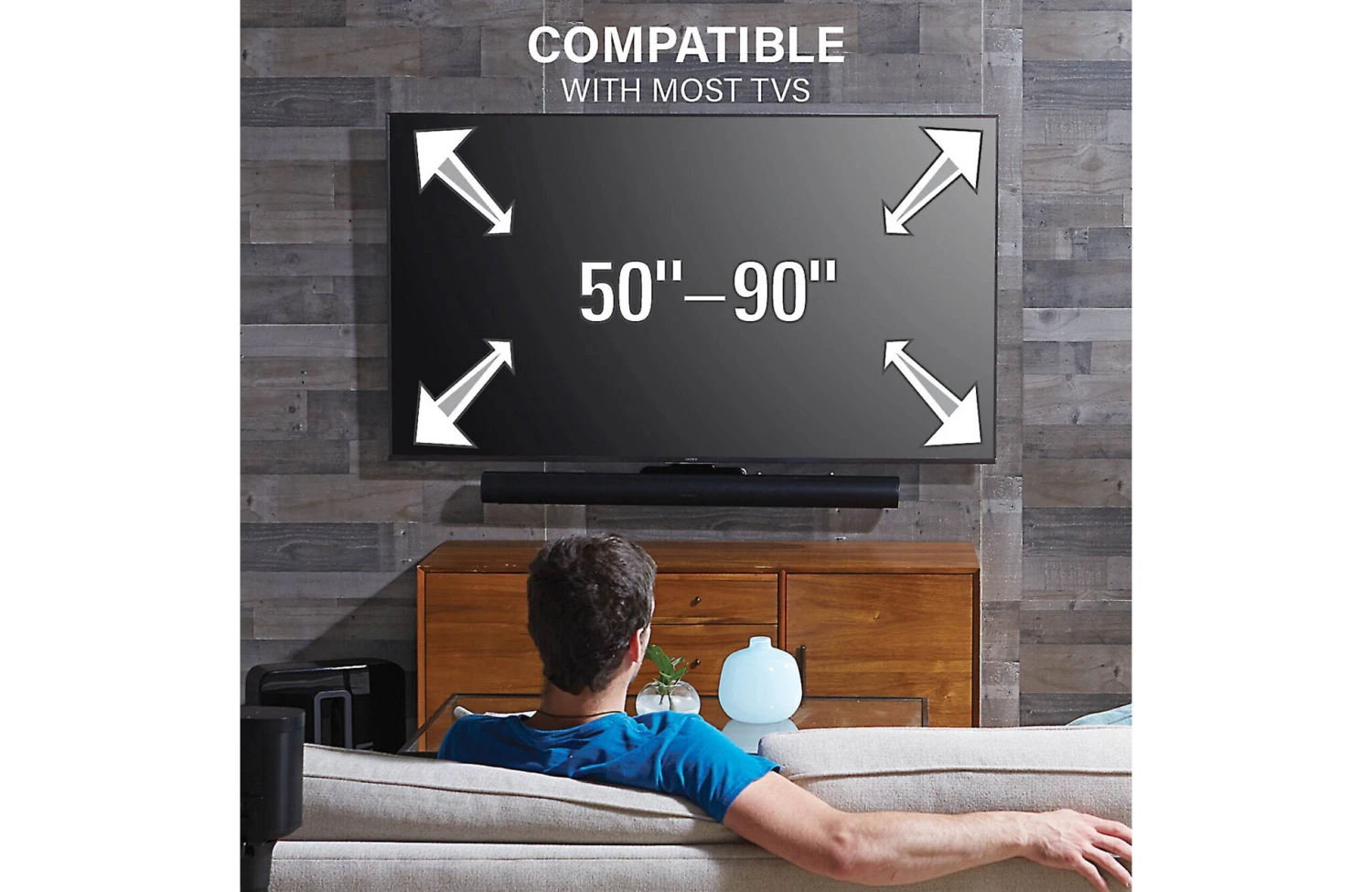 You can adjust the height of your mounted sound bar up to 15″, so you can use the bracket with TVs up to 90″. And with Sanus’ easy-release latches, you can adjust the Arc so it fits snugly under your TV, without using tools.