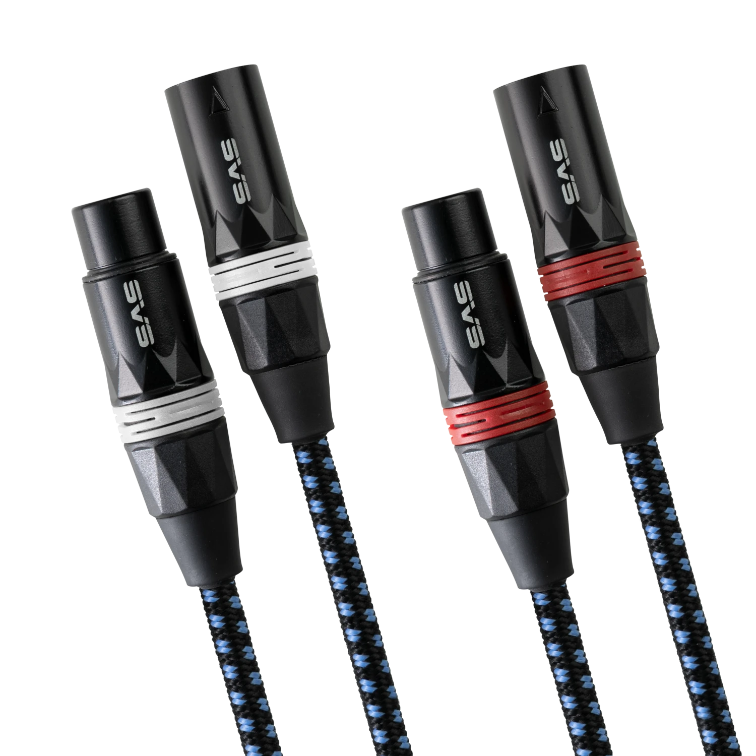 SVS SoundPath XLR Balanced Audio Interconnect Cables work with preamps, power amplifiers, subwoofers, AV receivers, microphones, and other audio components with balanced XLR inputs and outputs. Stereo pairs are color coded to show polarity. Densely braided cotton jacket provides easy gripping and protective outer sheath.